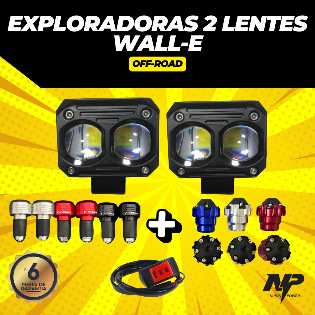 EXPLORADORAS NP-51: metalica, lupa bi color (blanco led/ amarillo rompe nieblas), inlcuye base metalica, 2 ojos, diseño wall-e